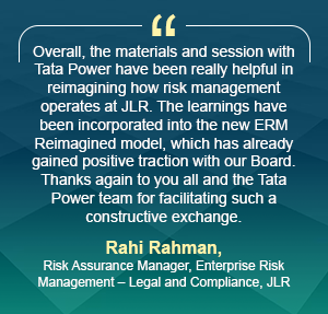 These insights have informed the design of JLR’s ERM Reimagined framework, where several of Tata Power’s practices have been adapted to its own business context.
